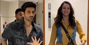 Bollywood star Kartik Aaryan and actress Triptii Dimri, who was last seen in the blockbuster film ‘Animal’ were spotted at the office of a production house in Mumbai on Sunday.