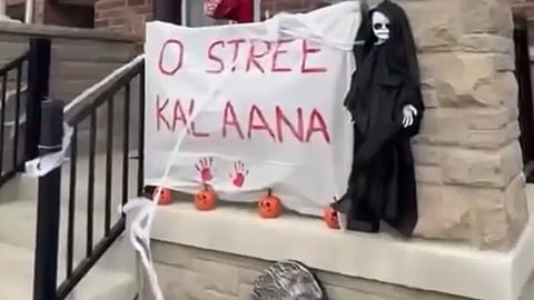 The spooky decorations in the Halloween festival went to another level when a home in Canada hung a poster on its outside reading “O Stree Kal Aana” which translates to “Oh woman, come tomorrow”.