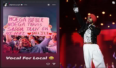 Diljit took to the Stories section of his Instagram and shared a picture from the event, showing a fan holding a placard that reads, “Hoega Beiber, hoega Travis, sadda taan ae hi hai, Diljit (There could be a Justin Beiber, there could be a Travis Scott, but for us, there’s only Diljit).”
