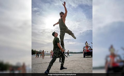 Bollywood actors Akshay Kumar and Tiger Shroff chose “bromance over romance” on Valentine’s Day on Wednesday. Akshay took to Instagram, where he shared two pictures. In one image, the focus is on them holding hands. The second image features Akshay and Tiger doing a stunt. The ‘Khiladi’ star is seen holding Tiger’s feet as the latter takes a high jump. “Bromance over romance this Valentine’s Day,” Akshay captioned the image.