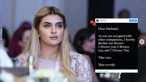 Shaikha Mahra Bint Mohammed Bin Rashid Al Maktoum, the daughter of Dubai’s ruler, has publicly declared “divorce” from her husband, Sheikh Mana Bin Mohammed Bin Rashid bin Mana Al Maktoum, on Instagram. The announcement comes just over two months after the couple welcomed their first child.