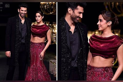Aditya Roy Kapoor charmed the audience in his true style, walking the ramp with Janhvi. Aditya, being KALKI’s first-ever male showstopper, says, “I’m absolutely thrilled to be KALKI’s first-ever male showstopper at Lakme Fashion Week.” His long jacket ensemble was breathtaking with a celestial shine, a masterpiece of style and craftsmanship. (Agencies)