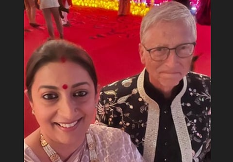 Actress Smriti Irani shared a picture with Bill Gates, the former CEO of IT giant Microsoft. The former actress took to her Instagram and shared a picture from a wedding. In the picture, Smriti can be seen wearing a pink coloured saree which she paired with a necklace. Bill Gates chose the Indian attire as he was dressed in a sherwani. She wrote in the caption, “Kyunki Bill bhi kabhi baaraati tha #weddings India wali #saturdayvibes.”