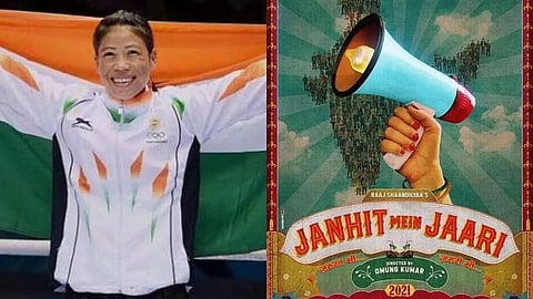 The film's poster focuses on a woman's hand holding a megaphone, with the map of India formed by humans in the background. Mary tweeted the poster and wrote: "Ek womaniya sab pe bhaari... ye soochna hai #JanhitMeinJaari! I'm looking forward to this film, it's such an interesting concept."