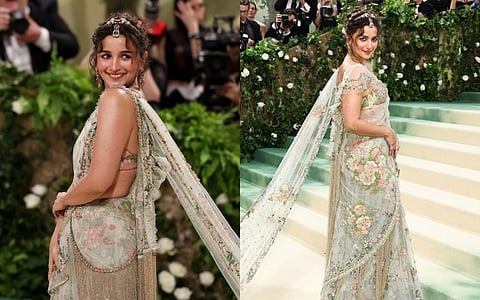 Alia shared her MET Gala look on Instagram, radiantly donning the saree on the carpet. The saree’s colour palette paid homage to “nature’s beauty.” Describing her look, Alia said it’s called the “Garden of Time - an ode to art and eternity.”