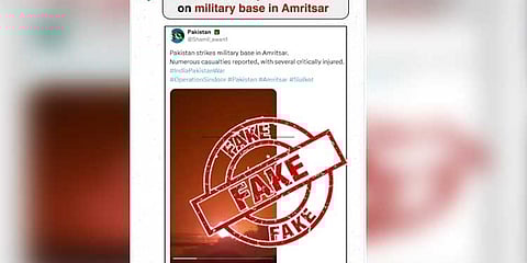 Following the strikes, a wave of disinformation emerged online, with Pakistani media houses and affiliated handles pushing false narratives and unverified claims across social platforms, particularly on X. Independent analysts and India’s official fact-checking bodies swiftly flagged many of these assertions as baseless. One of the most widely circulated false claims alleged that Pakistan had bombed an Indian military base in Amritsar. The video used to support the claim, showing massive flames lighting up the night sky, was quickly debunked.