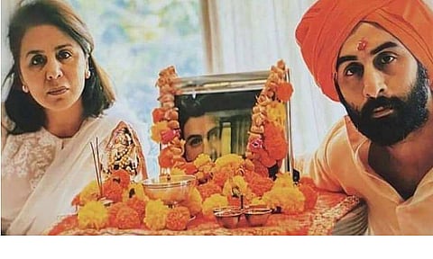 A picture is also doing the rounds on the internet in which Rishi Kapoor's wife Neetu Kapoor and son Ranbir Kapoor are seen sitting next to the former's photograph.