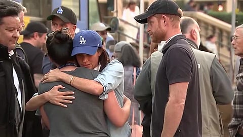 Meghan Markle and Prince Harry, the Duke and Duchess of Sussex visited the World Central Kitchen in Pasadena, California, to help distribute food and supplies to victims of the Eaton Fire on Friday.
