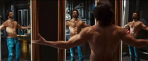 The video starts with Ranveer a.k.a. Rocky waking up to NseeB’s Munde Desi’ track. His pillow cover shows initial ‘RR’ printed on it. He then flaunted his washboard abs, and body shots, while working out in his grand bedroom.