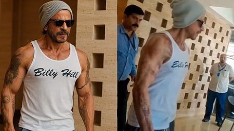 Khan was recently spotted by a fan sporting a new look. A video of him walking through a lobby is doing rounds on the internet, and fans think it is his look from “King”, which is being helmed by Siddharth Anand. While the video has been shot from a distance and gives a brief glimpse of the actor, it is enough to notice SRK’s distinct look. Khan can be seen dressed in a white vest, denims, sunglasses, and a beanie. He walks through a lobby with his team. Fans also noticed how ripped his arms looked and the fake tattoos covering them. The actor even greets people in the lobby before heading outside. His security can also be seen in the video to keep fans at bay. Most details of “King” featuring SRK has been kept under wraps for a long time now. But the viral video has made fans wonder if this is his look from the film.