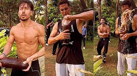 On April Fools’ Day, actor Tiger Shroff did not leave any chance to hilariously prank his co-star Akshay Kumar. Tiger on Monday shared a video on Instagram. The clip begins with Tiger shaking a big bottle of soft drink and then runs to play in the garden. Akshay comes in to join the game but the ‘Baaghi’ star asks him to first bring in the bottle.