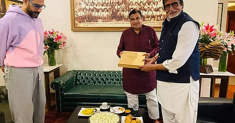 Union Minister for Road Transport and Highways, Nitin Gadkari, called on megastar Amitabh Bachchan at the latter's residence in Mumbai on Thursday and sought his support for the National Road Safety Mission.