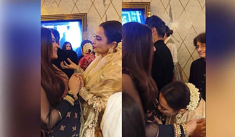 Veteran actress Rekha blessed mom-to-be Richa Chadha and was seen giving her blossoming baby bump a kiss. Rekha was attending the premiere of the upcoming series ‘Heeramandi: The Diamond Bazaar’.