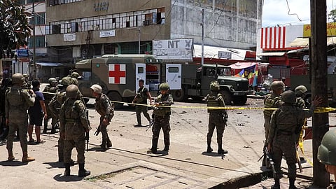 At least 10 were killed, including a suicide bomber, and 40 others injured in twin blasts in the Philippines' Sulu province on Monday, the army said. Western Mindanao Command chief Lieutenant General Corleto Vinluan said the victims also comprised five soldiers and four civilians, while 18 soldiers and 22 civilians were among the injured in the back-to-back blasts, reports Xinhua news agency. Lieutenant Colonel Ronaldo Mateo, the spokesman for the army's 11th infantry division based in Sulu, said a bomb attached to a parked motorcycle exploded at 11.53 a.m. in front of a grocery store, while the second occurred at 1 p.m. near the cathedral in Jolo, the provincial capital. He said troops were deployed in the area to secure the busy street, adding that soldiers and policemen were posted in the area daily to maintain peace and order. (IANS)