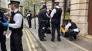 Four persons have been held on suspicion of conspiracy to cause public nuisance in the area of St Martin’s Lane, by Trafalgar Square, with lock-on devices seized while three more were held on suspicion of possessing articles to cause criminal damage near Wellington Arch.