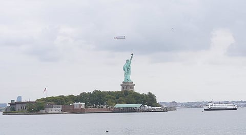 New York: New Yorkers woke up to a powerful appeal to the global community by the Hindu community in the US as American groups organised a huge airline banner, calling for urgent global action to stop the ongoing genocide of Hindus in Bangladesh. According to media reports, the large banner flew over the Hudson River and circled the Statue of Liberty, a global symbol of human dignity, freedom, and equality.