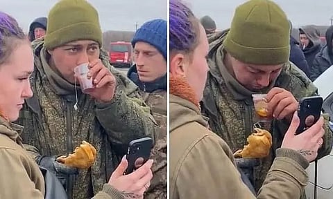 In a recent viral video from the war-torn country of Ukraine, a surrendered Russian soldier is spotted having food offered by the Ukrainian locals.