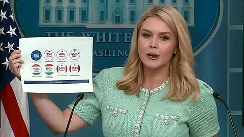 Washington: White House Press Secretary Karoline Leavitt, while lamenting the tariffs imposed by various nations on the United States, referred to the tariffs imposed by India on American alcohol and agricultural products.
