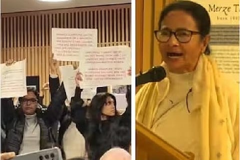 London: West Bengal Chief Minister Mamata Banerjee, while addressing the Kellogg College, Oxford University in London, on Thursday, was interrupted suddenly by a group of protesting students, who tried to disrupt her speech and embarrass the Chief Minister by raising the issue of post-poll violence and the RG Kar College and hospital rape case.