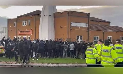 LONDON: A mob staged a violent demonstration outside the Durga Bhawan temple in United Kingdom's Smethwick on Tuesday triggering fears of clashes that erupted in the country's eastern city of Leicester over the past weeks following an India-Pakistan cricket match.