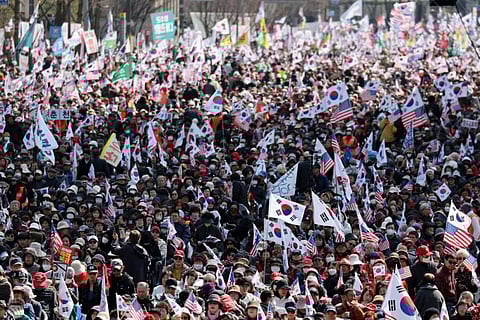 Seoul: Tens of thousands of supporters and protesters gathered in South Korea’s Seoul on Saturday, either opposing or demanding the ouster of impeached South Korean President Yoon Suk Yeol ahead of the Constitutional Court’s impeachment ruling.