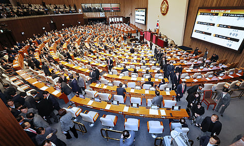 Seoul: South Korea’s parliament on Saturday failed to pass President Yoon Suk-yeol’s impeachment motion as most of the ruling People Power Party lawmakers refused to vote on it. After voting against a bill to investigate scandals involving Yoon’s wife, most of the 108 ruling party lawmakers left the parliament hall, Xinhua news agency reported. One ruling party lawmaker remained at the hall and two came back after leaving.