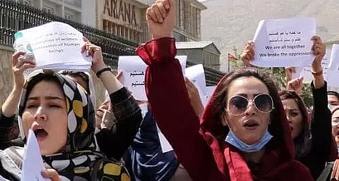 KABUL: A number of Afghan women staged a protest in Kabul against Taliban policies, demanding equal rights to education and work, according to a media report. Sunday's protest took place in response to the closure of the former government's Ministry of Women Affairs on September 17, said the Khaama News report. The Taliban replaced with the Ministry of Guidance and Promotion of Virtue and Prevention of Vice.