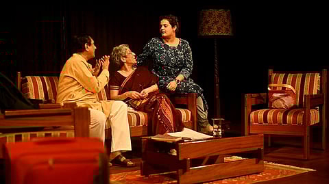 Ami Asu, penned by Dr. Amarjyoti Choudhury, is a poignant exploration of intergenerational conflicts over independence and concern set against the backdrop of a post-Covid world. Brought to life at Udara by the sharp and shrewd directional style of Sattyakee D’com Bhuyan, this October presentation featured the veterans: Dr. Amarjyoti Choudhury as Arup Baruah (Koka) and Dr. Santwana Bordoloi as Leena Baruah (Aita-Ma), alongside debut performances by Shivangi Chakravorty (Stuti) as Tanvi Baruah and Arkupal Ra Acharya as Tapan Deka. The brilliant play written by Dr. Amarjyoti Choudhury subtly explored the questions of agency, dignity, and loss. The interplay of light and shadow in the production added a profound layer to the storytelling, drawing the audience deeper into the world of Ami Asu. Bhuyan’s vision translated into a space where every movement felt purposeful and every pause carried weight. The actors, fully immersed in their roles, displayed an authenticity that made their characters’ struggles and joys resonate on a deeply personal level with the audience. The carefully curated background score by Reeha Bhuyan underscored pivotal moments, subtly amplifying the tension and releasing it with delicate precision. Dhanjit Bora was crafty with the lights and effects. What stood out was Sattyakee D’com Bhuyan’s directional ability to create a seamless connection between the actors and the audience, making the latter feel not just as spectators but as part of the unfolding narrative. The finesse with which the play was crafted was evident in every scene, leaving the audience emotionally moved as they applauded the brilliance of the direction, design, and performances weaving a thoughtful narrative on memories, time, and human connection.