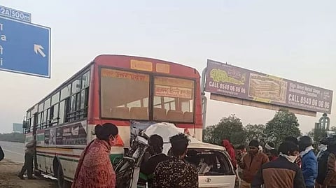 Four persons were killed and one injured in a road accident when a car rammed in to a state transport bus from behind along the Greater Noida Yamuna Expressway early Saturday, the police said. The collision of the car and truck at 6.45 a.m. was of such intensity that the crash left the front portion of the car completely flattened. The victims travelling in the car belonged to Agra, Ghaziabad, Haryana, Maharashtra while the injured person is a resident of Faridabad. According to police the spot was nearly one-and-a-half kilometres before the zero point near the HP petrol pump along the expressway line from Agra to Greater Noida at the Beta-2 police station area. All four deaths took place on the spot while the fifth is critical. (IANS)