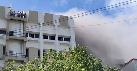 Mumbai: At least 84 persons were rescued but scores more were still trapped as a massive fire engulfed the Mahanagar Telephone Nagar Ltd building in Bandra here on Monday afternoon, an official said. The blaze erupted round 3.10 pm on the fourth floor of the ground-plus-nine storey building and started spreading upwards, trapping many working in the building. Many MTNL employees, who were out on lunch at that time, said they saw huge clouds of smoke billowing out of the building and alerted their colleagues inside to move to safety. As there was no way out, many of them rushed towards the terrace and could be seen frantically waving their hands and kerchiefs and screaming for help from the rescue teams below. (IANS)