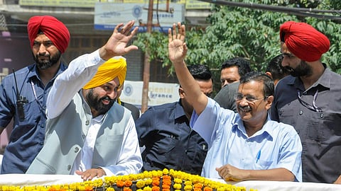 Sangrur: In a last-minute bid to re-win Punjab Chief Minister Bhagwant Mann’s bastion just hours before the campaigning for 13 parliamentary seats come to an end, Aam Aadmi Party (AAP) convenor Delhi Chief Minister Arvind Kejriwal on Thursday campaigned with the state counterpart for party candidate Gurmeet Singh Meet Hayer here.