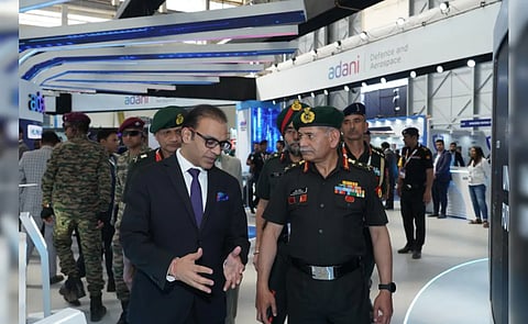 General Upendra Dwivedi and Fleet chief Admiral D.K. Tripathi were briefed by Adani Defence & Aerospace CEO Ashish Rajvanshi about the weaponry on display and also about the firm's thrust on developing futuristic technology.
