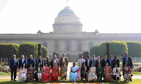 NEW DELHI: President Droupadi Murmu along with Chief Justice of Delhi High Court Justice Satish Chandra Sharma and judges of the High Court of Delhi visited the Amrit Udyan of Rashtrapati Bhavan on Sunday.