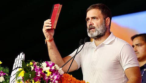 Addressing a public gathering in Jharkhand’s Singhbhum, Rahul waved a copy of the Constitution from the stage and said, “This is not an ordinary book, this is the Constitution - the voice of the Adivasis, the Dalits, the backwards and the poor.”