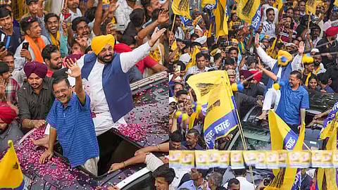 New Delhi: Delhi Chief Minister and Aam Aadmi Party (AAP) convenor Arvind Kejriwal held a roadshow along with Punjab Chief Minister Bhagwant Mann in Mehrauli on Saturday.