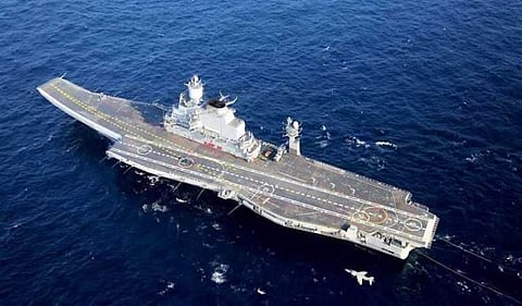 Panaji: Days after an officer died fighting a fire on board INS Vikramaditya, the aircraft carrier will participate in the upcoming 10-day Indo-French naval exercise ‘Varuna 19.1’ which gets underway here on Wednesday. An Indian Navy statement also said that the exercise will be conducted in two phases - the harbour phase at Goa, which would include cross-visits, professional interactions and sports events, and the sea phase, which comprises various exercises across the spectrum of maritime operations. “From the Indian side, the aircraft carrier INS Vikramaditya, destroyer INS Mumbai, the Teg-class frigate, INS Tarkash, the Shishumar-class submarine, INS Shankul and the Deepak-class fleet tanker, INS Deepak, will be participating in this exercise,” it added. Part two of the exercise, ‘Varuna 19.2’, is scheduled to be held at the end of May in Djibouti. The bilateral naval exercises, initiated in 1983 and christened ‘Varuna’ in 2001, form a vital part of the Indo-French strategic partnership and has grown in scope and complexity over the years. (IANS)