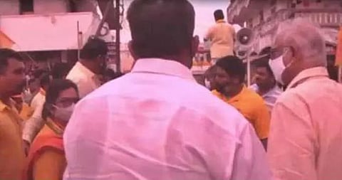 A Telugu Desam Party (TDP) woman member in Vizianagaram purportedly faced public humiliation at the hands of her party veteran and former Civil Aviation Minister Ashok Gajapati Raju. In the video, Gajapati Raju, wearing a facemask, is seen walking away from a group of people. A few seconds later, Raju can be seen walking back and slapping a lady, while other party workers are trying to placate him. The incident, caught on video which has since made its way to social media, occurred while Gajapati Raju was campaigning for the municipal elections that are scheduled for March 10. Eyewitnesses said the incident took place in Phool Bagh area of Vizianagaram which lies 60km to the north of the port city of Visakhapatnam. No comment was forthcoming from the scion of the erstwhile royal family of Vizianagaram but local TDP functionaries brushed away the incident as a minor one, and that the former minister had merely pushed away the plate of flower petals. (IANS)