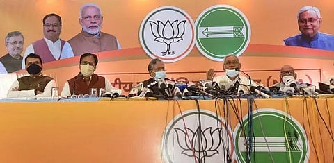 Several leaders including Bihar BJP chief Sanjay Jaiswal, BJP Bihar in-charge BhupendraYadav, BJP's Bihar poll in-charge DevendraFadnavis, JD-U state chief Vashisht Narayan Singh and Bihar Deputy Chief Minister Sushil Kumar Modi were present at the joint press meet.