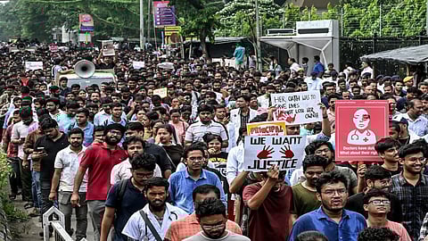 Kolkata: Thousands of junior doctors and medical students in Kolkata have started an indefinite dharna after their protest march to the police headquarters was stopped far away from it on Monday afternoon.