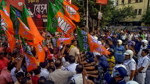 Kolkata: BJP workers in Kolkata protested against West Bengal Chief Minister Mamata Banerjee-led State Government over 26,000 teachers losing their jobs in connection with the SSC recruitment case, following a Supreme Court judgment which held that the whole appointment process was tainted.