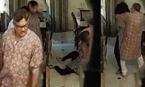 In the clip that went viral on Sunday, the officer is seen pushing, hitting, and pinning down his wife while two other men, probably from his staff, look on. At one point in the video, Sharma points at his hands and complains that his wife had injured him.