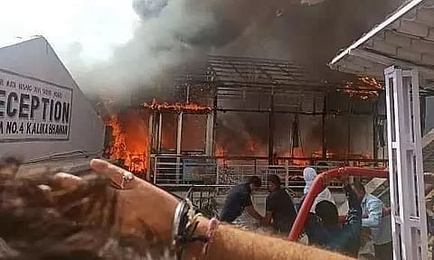 Katra, Jammu: A major fire broke out Tuesday evening at a building situated inside the Mata Vaishno Devi temple complex in Katra in Jammu and Kashmir. The fire broke out at around 4.15 pm inside a cash counting room in Kalika Bhavan, which is adjacent to the sanctum sanctorum.