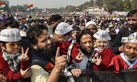 NEW DELHI: After Delhi resident, Avyaan Tomar hogged the limelight by wearing attire similar to that of Delhi Chief Minister-designate Arvind Kejriwal during winters, other similarly dressed children were seen making way to the Ramlila Maidan here on Sunday, ahead of Kejriwal's and his Cabinet's oath-taking ceremony. One such child, Zaid Hussain, donning a Kejriwal attire, stood in a queue to enter the venue.