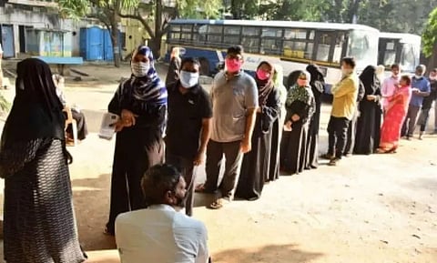 HYDERABAD: Around 30 per cent voters cast their votes in the elections to the Greater Hyderabad Municipal Corporation (GHMC) till 4 p.m. on Tuesday, election officials said. According to the State Election Commission (SEC), 29.76 per cent electorate cast their votes with two more hours left for the polling process to end. Like in the previous municipal polls, voter indifference marked GHMC elections this time too with the COVID-19 pandemic and series of holidays further bringing down the turnout.