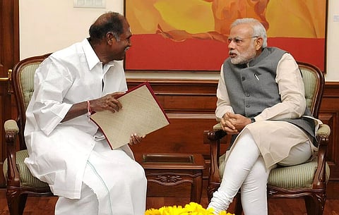 CHENNAI: Puducherry Chief Minister N. Rangasamy called on Prime Minister Narendra Modi in New Delhi on Tuesday. This is the first time the Puducherry Chief Minister had met the Prime Minister after assuming office 15 months before.