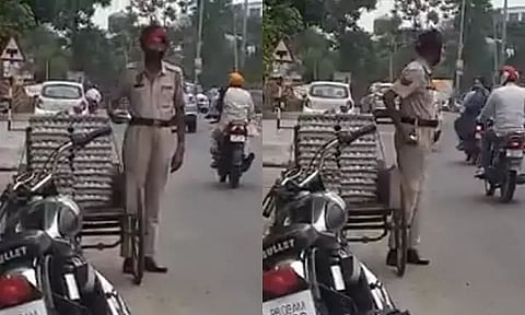 Chandigarh: Pritpal Singh, a Punjab head constable has been suspended after he was caught on camera, stealing eggs from a cart on a busy road in the state's Fatehgarh Sahib town, around 40 kilometres from Chandigarh. The video has gone viral on social media.