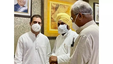 A huge crowd had gathered at the airport to welcome the Congress leader who was accompanied by Chief Ministers of Chhattisgarh and Punjab, Bhupesh Baghel and Charanjit Singh Channi, respectively.