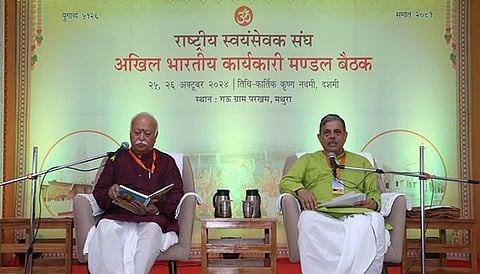 Mathura: The two-day meeting of the Rashtriya Swayamsevak Sangh’s (RSS) All India Executive Council was inaugurated by RSS Chief Dr Mohan Bhagwat and General Secretary Dattatreya Hosabale, who paid floral tributes to the portrait of Bharat Mata.