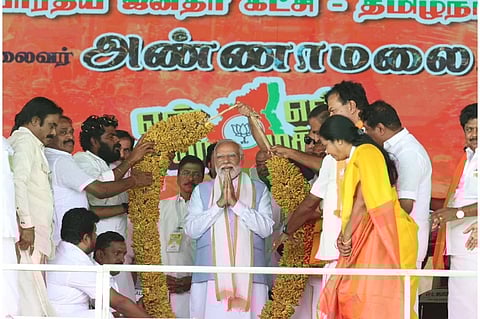 The Prime Minister was addressing a mammoth rally at Palladam near Tiruppur on Tuesday during the culmination of the six month long ‘En Mann, En Makkal’ rally undertaken by the Tamil Nadu BJP President, K. Annamalai.