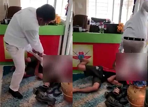 The notorious person identified as Salim Khan was seen hitting an employee in the shocking video.